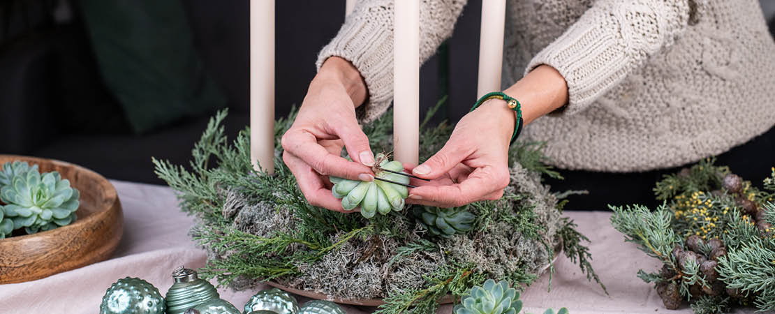 - Kerzen anbringen: Befestige die Kerzenhalter gleichmäßig auf dem Kranz. Achte darauf, dass sie stabil sitzen und die Kerzen geradestehen.