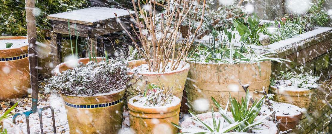 Pflanzen im Topf sind besonders gefährdet, weil die Erde schneller durchfriert. Stelle die Töpfe am besten dicht zusammen an eine geschützte Hauswand und umwickle sie mit Noppenfolie, Jute oder Kokosmatten. Zusätzlich kannst du den Topf auf eine Holz- oder Styroporplatte stellen, damit keine Kälte von unten eindringt.